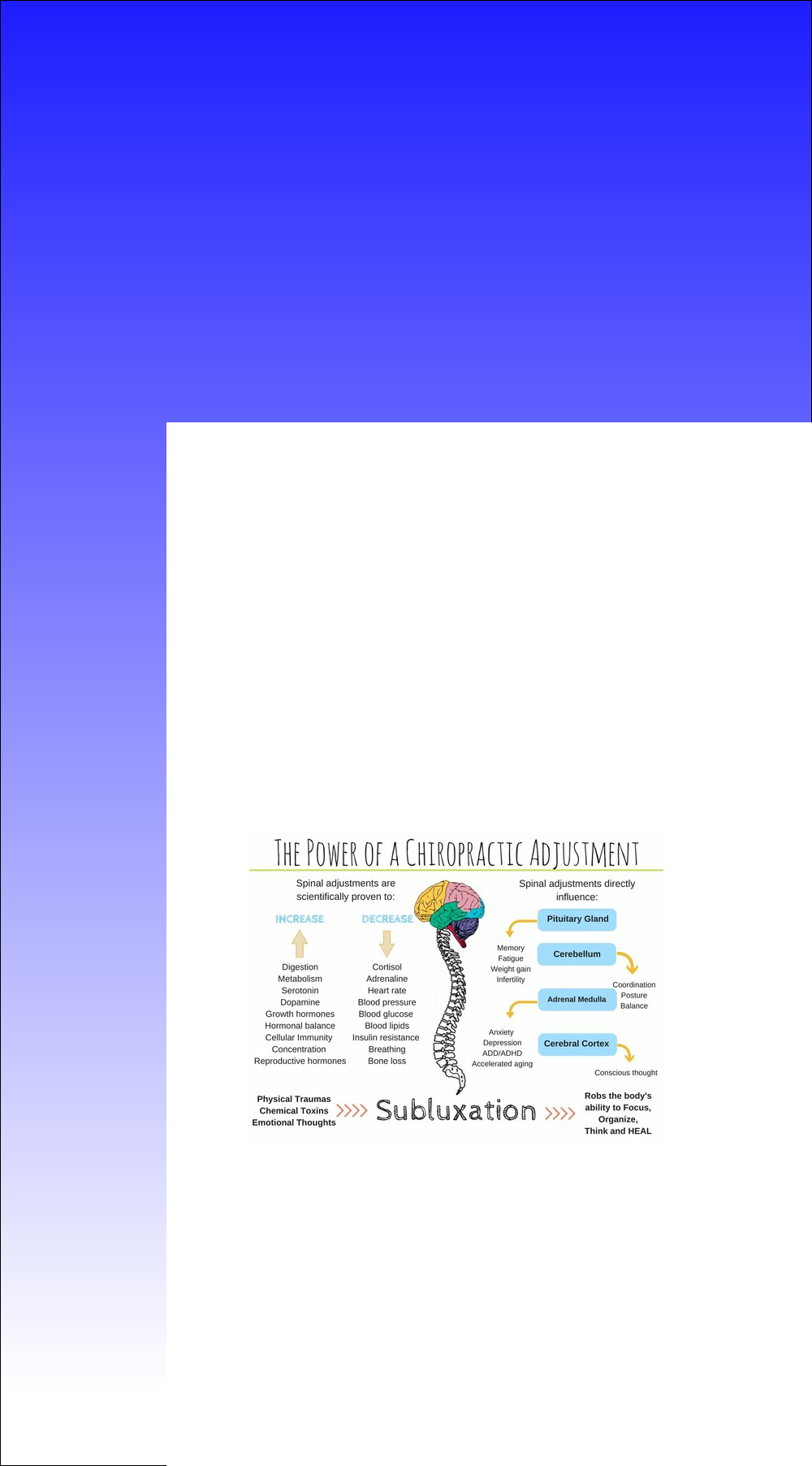Chiropraktik ist die Wissenschaft, Heilkunst und Philosophie, die sich damit befasst, eine gute Gesundheit wiederherzustellen, indem die Funktion des Nervensystems und Bewegungsapparat normalisiert und gepflegt wird.